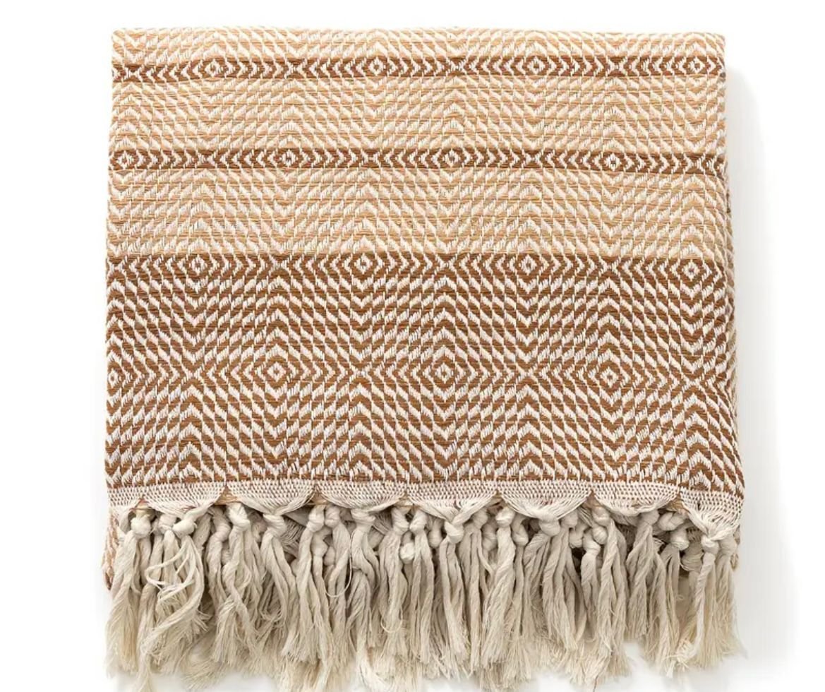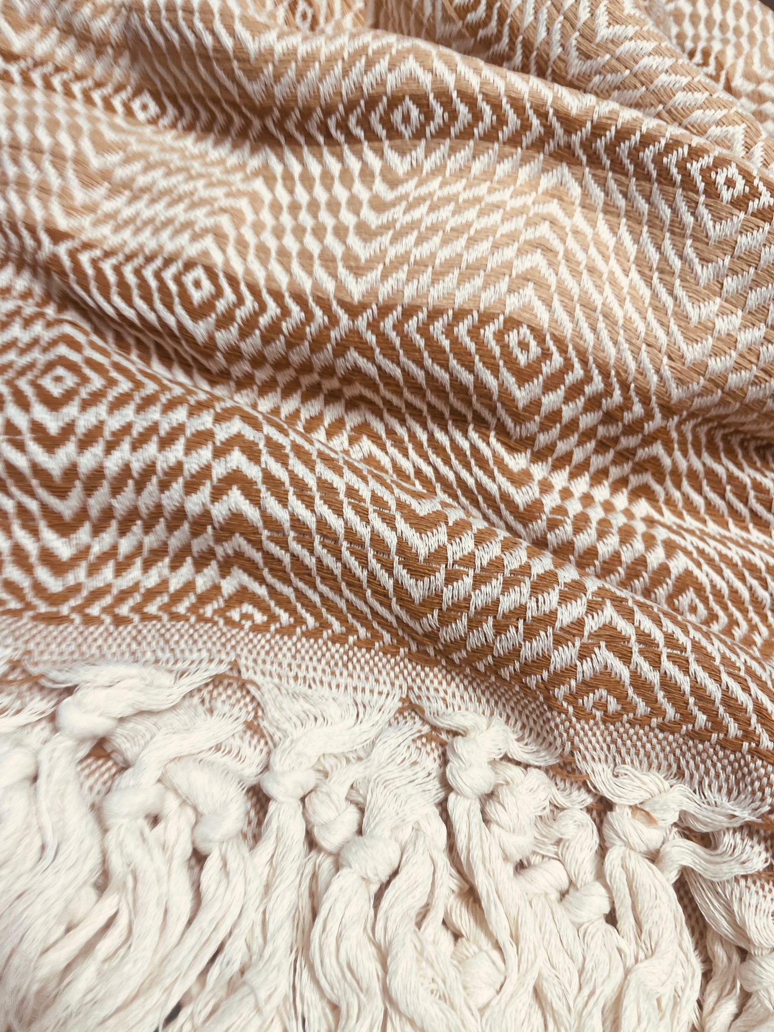 Rebozo is a woven wrap. Ethnic ornament and fluffy fringe turn it into a unique accessory.